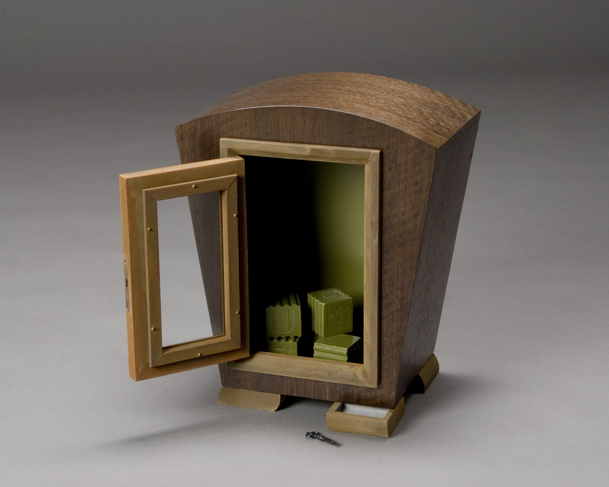 Carving and shaping are important techniques as they allow for a more intuitive work process. Surface treatment has been, and continues to be a focus. Using milk paint and acrylic, I often layer similar hues, sanding through to reveal the archeology of the activity. These manipulated surfaces, when combined with the natural grain of wood, put each material in a different context that I hope brings the ordinary and overlooked to the fore.